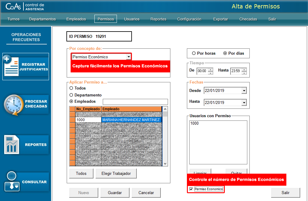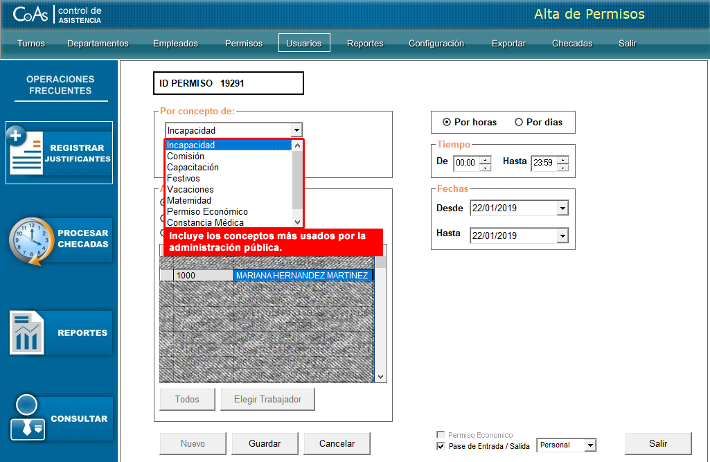 Configuración de Retardos Menores y Mayores | Reportes de Incidencias | Pases de Entrada y Salida | Reportes de Permisos Económicos | Vacaciones, Incapacidades y Días Festivos | Compatible con checadores de Huella, Mano y Rostro